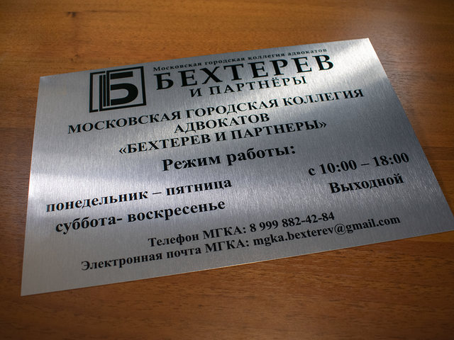 Каждая табличка может быть оснащена декоративным профилем из алюминия. Данный профиль подходит как для уличного, так и для интерьерного применения. В комплекте к профилю идут два кронштейна для удобства монтажа. В наличии имеются профиля черного, золотого и серебристого цвета в матовом и глянцевом исполнении. Более подробную информацию по наличию цветов уточняйте у наших менеджеров. Стоимость погонного метра профиля составляет 400 руб.